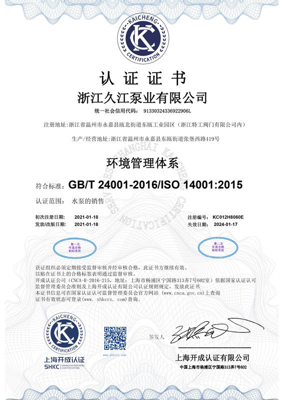 浙江久江泵業有限公司是專業從事自吸泵,柴油機泵,管道泵,排污泵,隔膜泵,螺桿泵,多級泵,智慧泵房等各類水泵及附屬產品生產和銷售的企業,公司落座于具有“泵閥之鄉”美稱的溫州甌北,與市區隔江相望,甬臺溫、金麗溫高速貫穿市中心;到火車站僅需20分鐘車程,至機場不到1小時,交通十分便利,資訊發達。企業自成立以來,充分的利用區域性專業集群優勢,大力開發科技創新。多年來公司積國內水泵優秀企業的技術、人才、管理等資源優勢,進行有效合理的整合,并輔以現代企業管理模式、科學高效的公司管理體制制度,通過近幾年的快速發展,依靠雄厚的科技實力和扎實的管理基礎,通過ISO9001-2000國際標準質量體認證。久江人通過“專注科技成就恒久品牌、專業技術造就長久品質、專心服務創造永久口碑"的宗旨,堅持誠信經營,在強手如林的泵閥行業占據了一席之地。